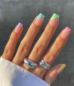 De ceva timp incoace, manichiura French a primit o multime de versiuni actualizate, moderne si cool, in nuante vii si pline de personalitate. Acestea sunt ideale pentru lunile de vara, cand hainele devin mai subtiri si mai colorate, iar atmosfera e mai relaxata si mai casual.