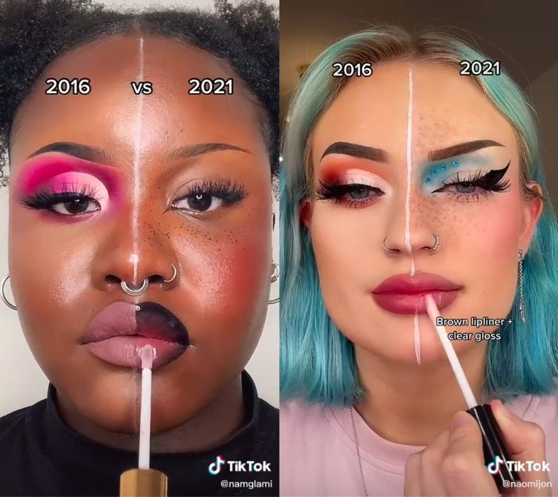 Un nou challenge adoptat de make-up artistii de pe TikTok iti arata exact care sunt schimbarile, atat ca tehnici de aplicare a produselor, cat si din punct de vedere cromatic sau din perspectiva finishului. Expertii isi impart tenul pe jumatate si isi machiaza fiecare jumatate de chip conform celor doi ani – 2016 si 2021. Poti intui care sunt diferentele majore?