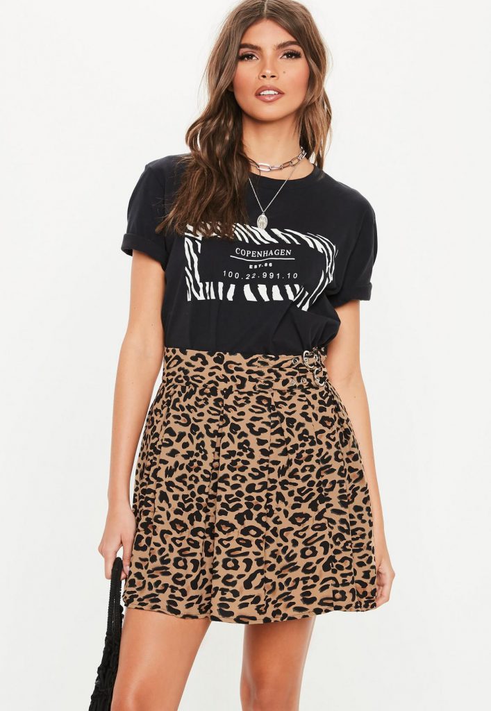 Missguided black leopard print pleated mini skirt, 25 lire, www.missguided.co.uk
