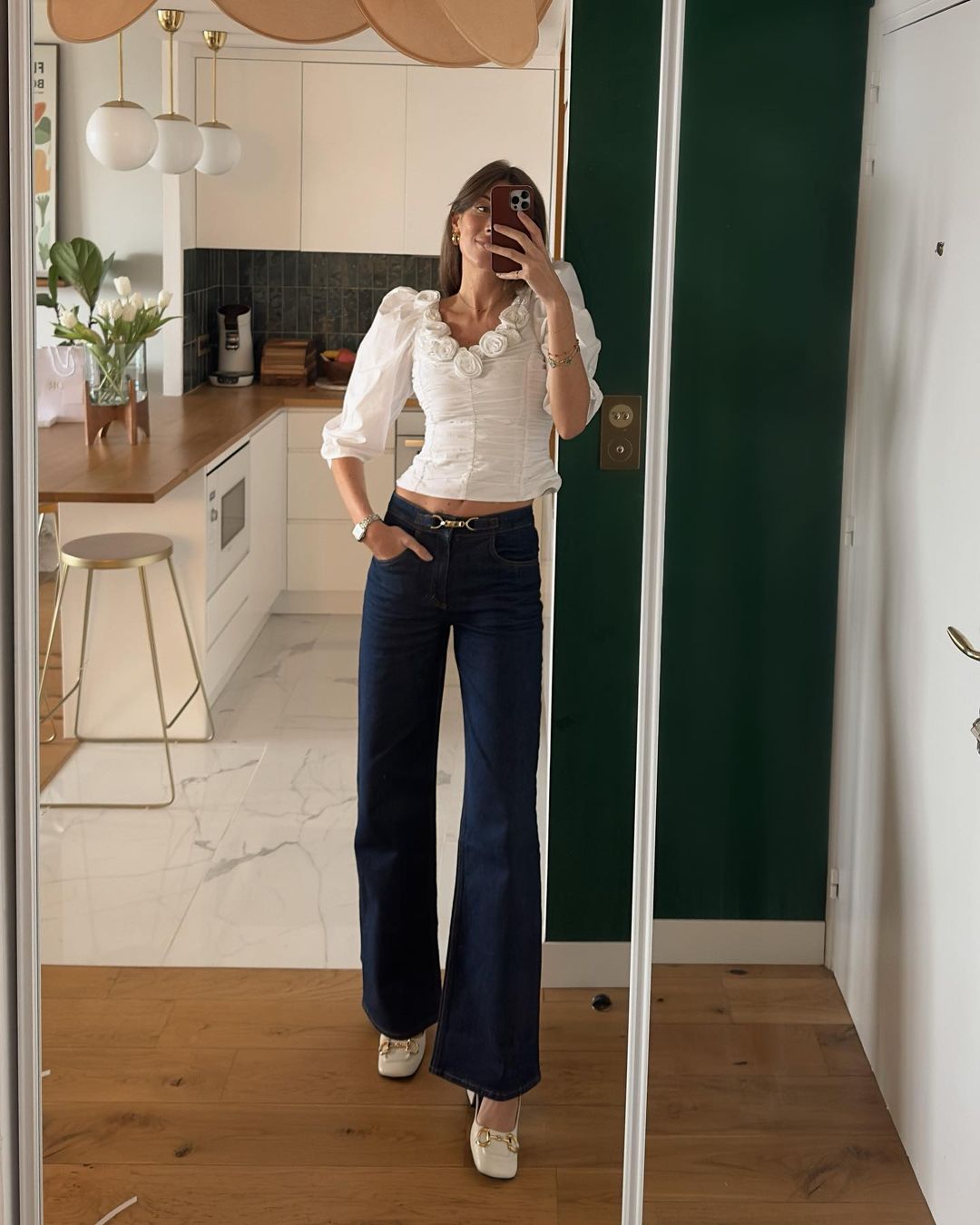 Daca te plimbi pe strazile Parisului, vei observa ca majoritatea femeilor stilate de acolo poarta jeansi, insa stiu cum sa-i combine astfel incat sa creeze o tinuta chic ce pare effortless. M-am inspirat din tinutele lor si iti propun mai jos cateva optiuni fermecatoare. In primul rand, ai nevoie de perechea perfecta de jeansi. Opteaza pentru un jeans drept, flare sau baggy – sunt cele mai populare croieli acum.