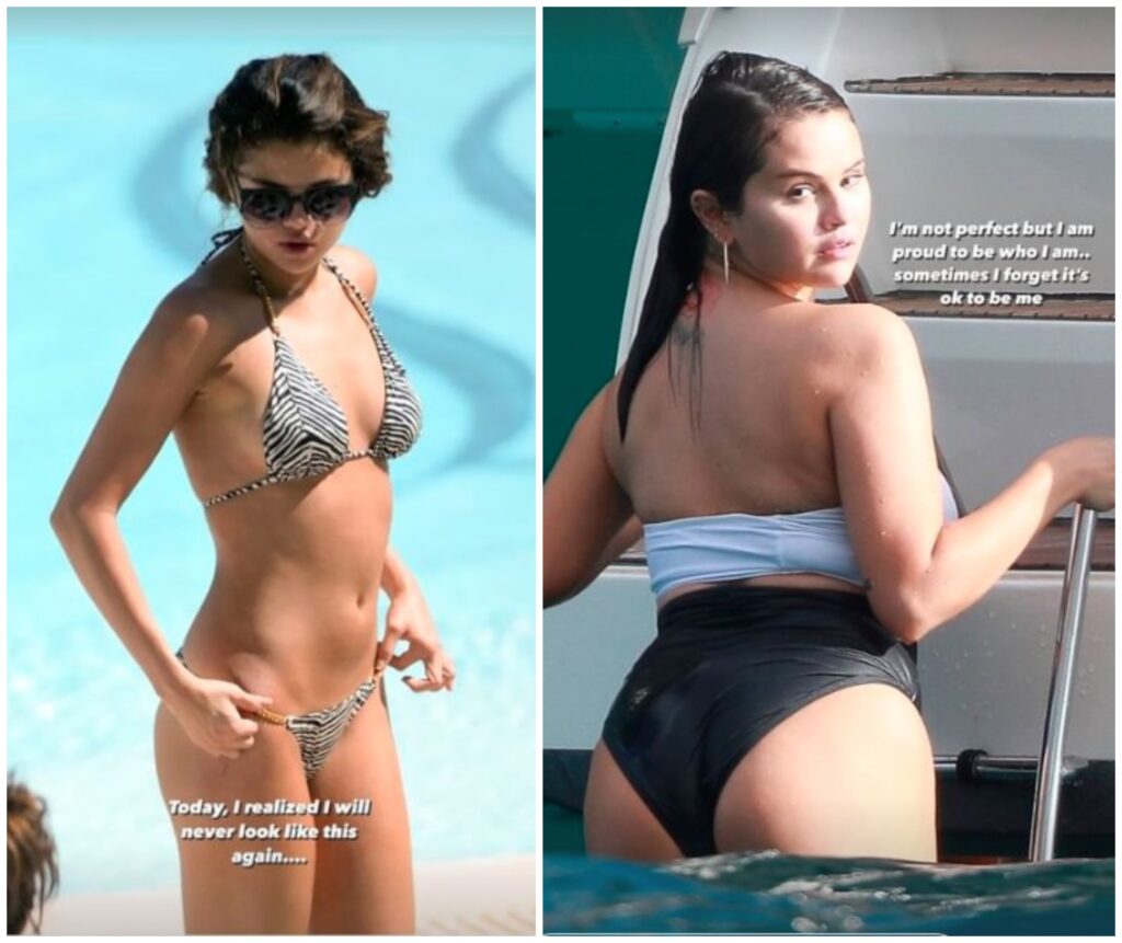 „Azi am realizat ca nu voi mai arata niciodata asa”, a scris Selena in dreptul primei imagini, realizate in Miami, Florida, in 2013. Ea a dezvaluit in trecut ca a plans foarte mult din cauza comentariilor in care era criticata pentru formele sale.