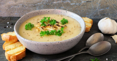 Supa-crema de conopida, aromata cu ulei de chili si usturoi. E perfecta pentru zilele friguroase de iarna!