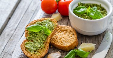 Bruschete cu ricotta si marinata de verdeturi