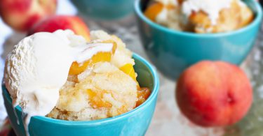 Cel mai aromat desert de vara: prajitura cobbler cu piersici si inghetata de vanilie