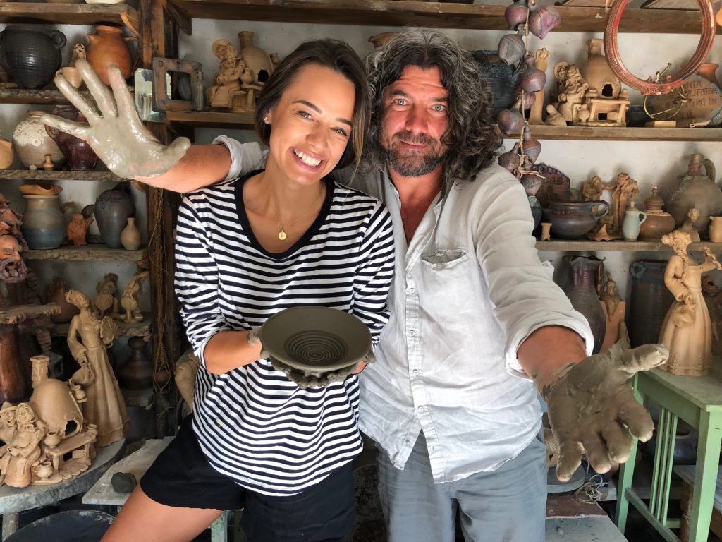 Ei mi-au facut cunostinta cu tainele olaritului si m-au lasat sa testez cunostintele nou dobandite, activitate care m-a incantat peste masura si pe care o recomand oricui isi doreste sa se reconecteze cu traditiile batranilor nostri si sa inteleaga cat de relaxant poate fi sa-ti folosesti mainile in armonie, zambind ca un copil cand vezi ce iese din acele miscari molcome.