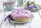 Prajitura cu branza ricotta, afine si glazura de lavanda
