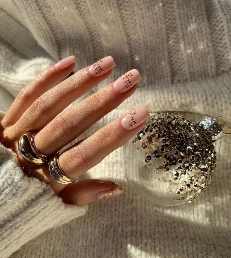 Upgradeaza o manichiura nude cu fulgi aurii si stelute pentru un look cu adevarat winter wonderland si care-ti va pune cu siguranta in valoarea de tinuta de petrecere.