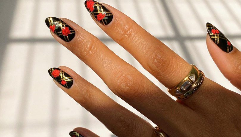 Ce poate fi mai romantic decat un trandafir rosu? Acesta este pictat de mana de nail artistul Betina Goldstein, peste o baza transparenta. Se potriveste de minune cu unghiile semi-scurte si cu forma patrata, moderna. Desi este un model greu de pictat manual, il poti simplifica sau poti apela la stickere care se lipesc cu usurinta pe unghii. Nu uita sa aplici un top coat dupa, pentru ca designul sa reziste.