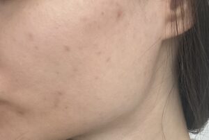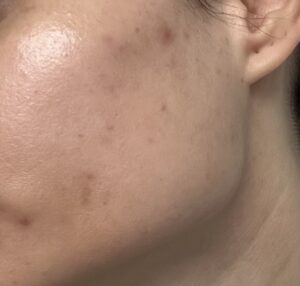 In primul rand, mai putine eruptii acneice. Suprafata tenului este mai neteda, fara acea textura suparatoare. Nu mai am atat de multe puncte mici sub piele, tenul este mai curat si mai luminos. Eruptiile acneice active pe care le aveam cand am facut tratamentul s-au vindecat mai rapid si nu au mai lasat semne atat de vizibile. Si urmele post-acnee pe care le aveam de mai demult s-au mai estompat.