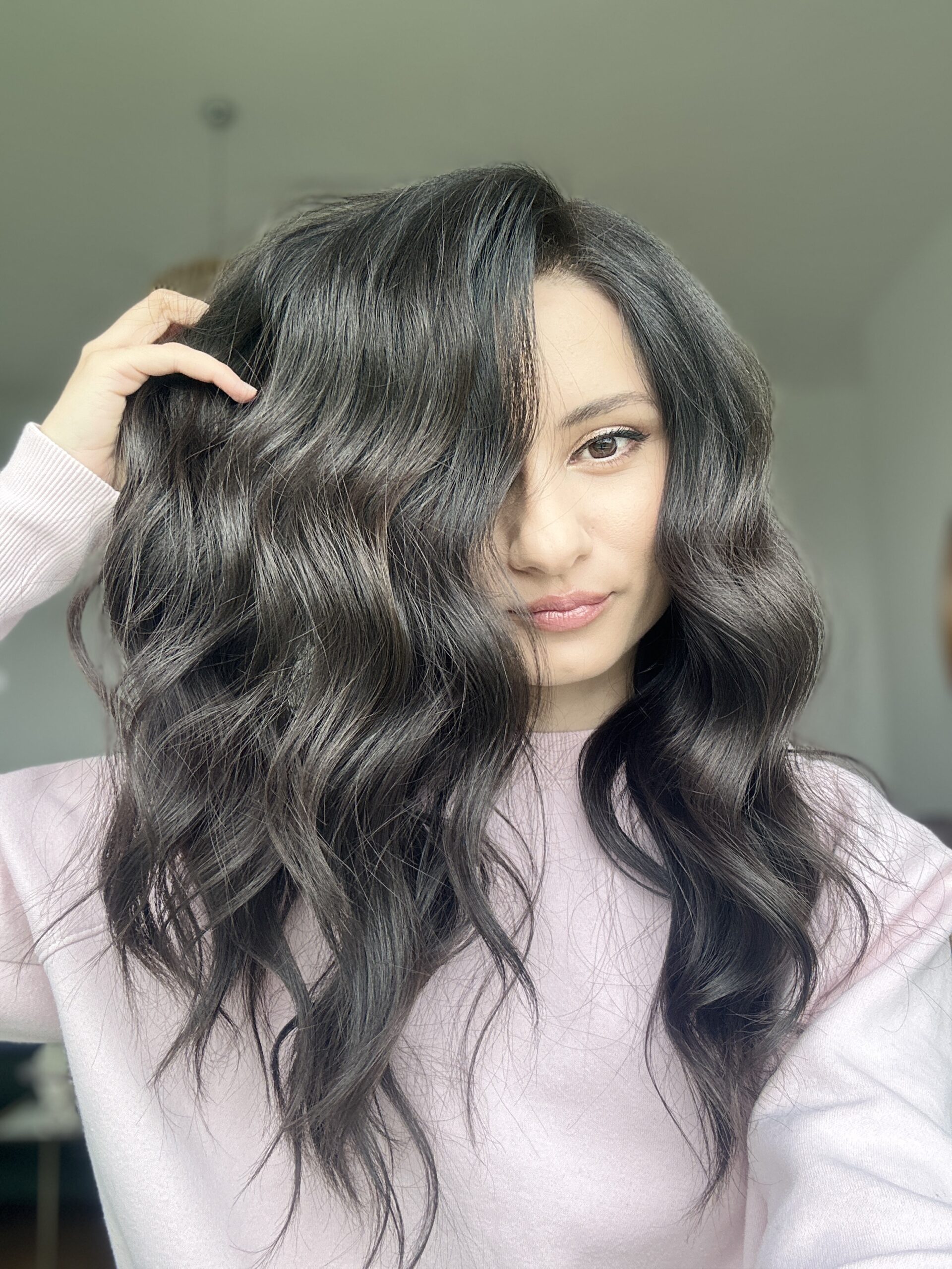 Asa cum vezi, parul meu a capatat acel efect glazurat si voluptos pe care mi l-am dorit intotdeauna. Are un aspect mai sanatos, mai luminos, iar nuantele calde care nu-mi placeau au fost neutralizate. Buclele realizate de Marius au pus foarte bine in valoare efectul frumos creat de Shinefinity. Acest tratament este disponibil exclusiv in saloane.