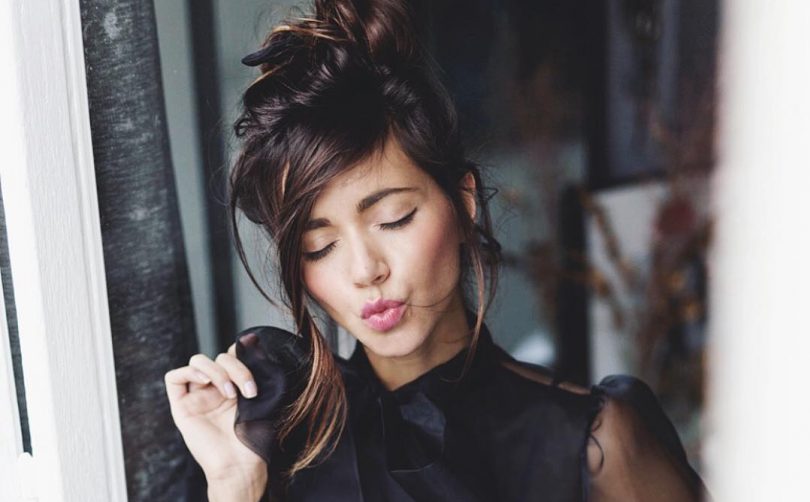 Este extrem de simplu sa-ti faci o astfel de coafura. Pulverizeaza pe par putin spray pentru texturare, strange-l in pumni pentru a obtine volum, apoi impleteste doua suvite subtiri care sa-ti incadreze chipul.