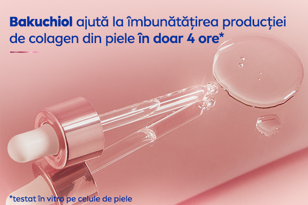 Imbunatatit cu o cantitate de 10x mai mare de Bakuchiol pur¹, creste productia de colagen a celulelor in doar 4 ore2, cu efect vizibil de lifting, in doar 1 saptamana3.