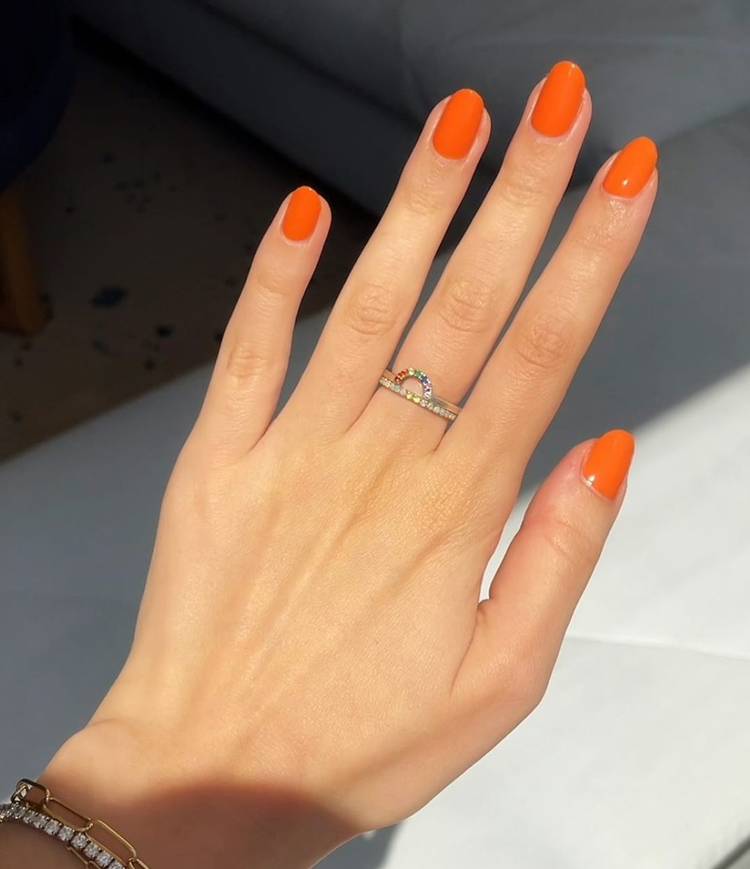 O nuanta de oja care aminteste de cocktailurile fresh de vara nu va trece neobservata. Oranjul lucios este de impact, insa ramane elegant si stilat, complimentand orice look de vara. Si aceasta nuanta arata bine pe pielea bronzata. Iti recomand un finish lucios si un oranj real, nu unul pastelat.