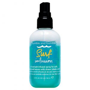 O alta varianta este sa folosesti Surf Infusion de la Bumble and Bumble. Prinde-ti parul in doua cocuri in crestet. Asta va ajuta sa nu se creeze electrizarea firelor de par in timpul somnului. Caci vei face aceasta operatiune inainte sa te culci. Apoi, la trezire, desfa parul si aplica spray-ul. Esti gata!