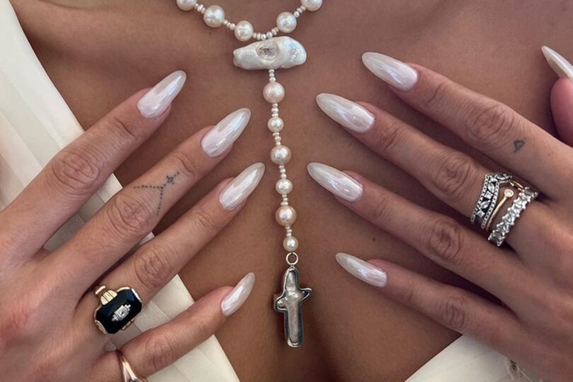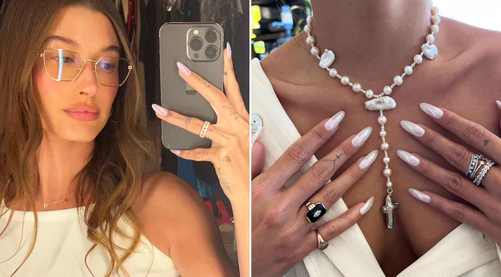 Hailey Bieber este in mod evident obsedata de „glazurare”, chiar si atunci cand vine vorba despre ingrijirea pielii. Supermodelul iubeste pielea luminoasa si foloseste adesea creme si serumuri cu particule iluminatoare pentru acel efect glossy. Cel mai recent, insa, a devenit virala manichiura ei „glazurata”: unghiile albe perlate au innebunit internetul.