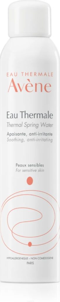Am intotdeauna la indemana apa termala, fie ca sunt acasa sau la birou. O folosesc atat pentru a ma reimprospata, cat si pentru a fixa machiajul, atunci cand nu am la indemana un spray special pentru fixarea machiajului. Preferata mea este cea de la Avène, deoarece are proprietati calmante si anti-iritante, ceea ce o face ideala pentru un ten sensibil.