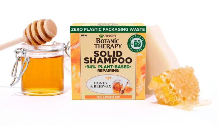 Daca vrei sa reduci folosirea plasticului, cei de la Garnier au si o varianta solida a samponului, care iti ofera un numar de spalari echivalent cu doua sticle de sampon.