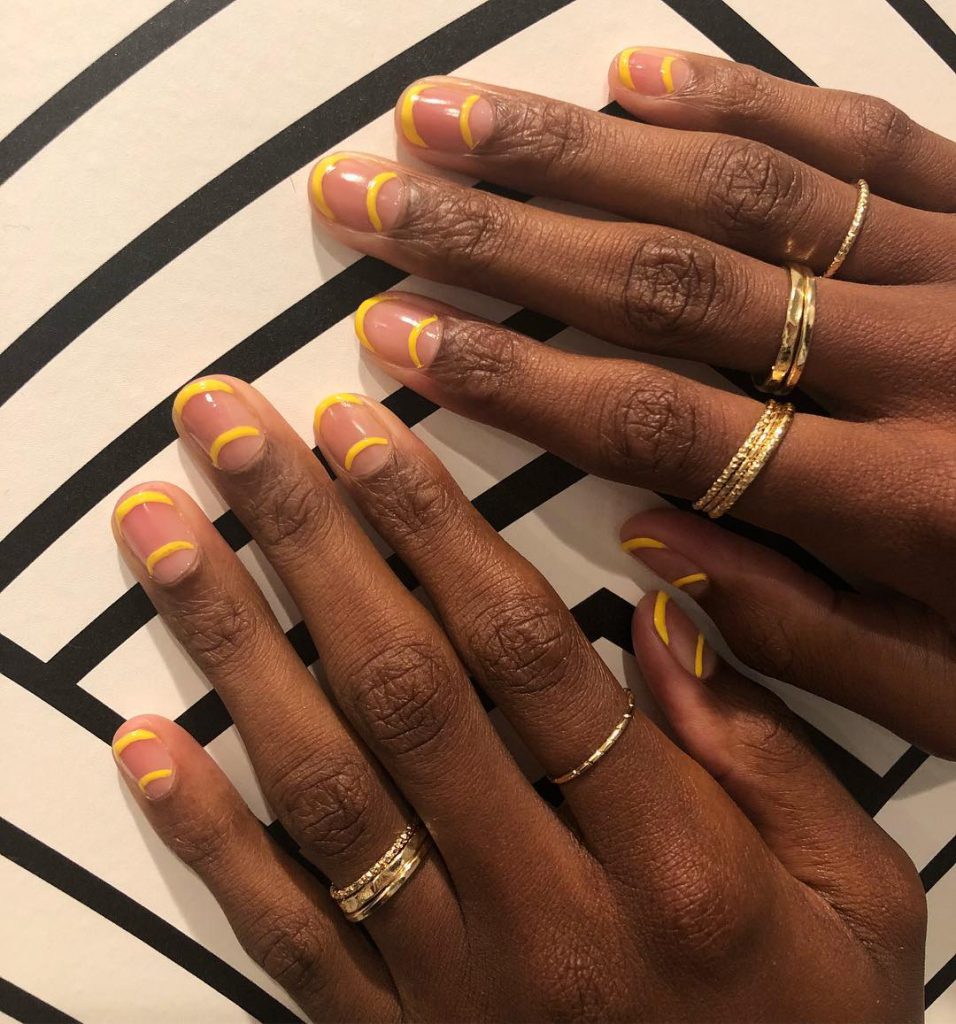 Manichiurista Elle Gerstein, care se ocupa de unghiile frumoasei Blake Lively, a creat acest concept simplu, insa sofisticat si de efect. Peste un lac transparent extra glossy deseneaza cu o pensula special conceputa pentru pictura pe unghii (o poti achizitiona din magazinul Cupio, dotat cu toate accesoriile de unghii de care poti avea nevoie) o semiluna dubla: una la baza unghiei, si una la varf. „Pentru o curba perfecta, incepe sa trasezi liniile din partile laterale, apoi uneste-le la mijloc”, recomanda Gerstein.