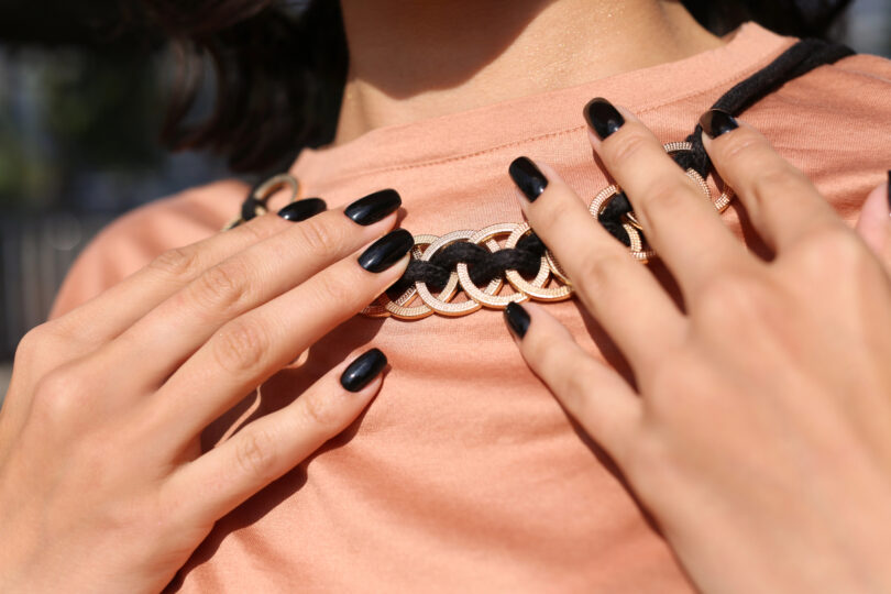 Sau alege un model care sa incadreze toata unghia, iar acest lucru iti va permite sa porti unghiile negre oricat de lungi vrei.