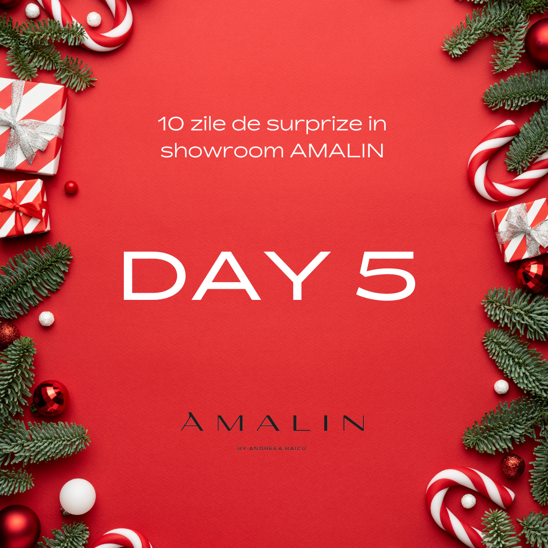 Vino in showroom-ul nostru de pe strada Paris 7A ca sa-ti alegi tinuta preferata Amalin si ca sa te bucuri de cadoul zilei de azi. Si nu uita ca mai avem inca 5 zile de cadouri, asa ca urmareste-ne si afla ce surprize zilnice iti pregatim! Duminica si luni magazinul nostru este inchis, dar reluam surprizele din calendarul advent marti, 19 decembrie.