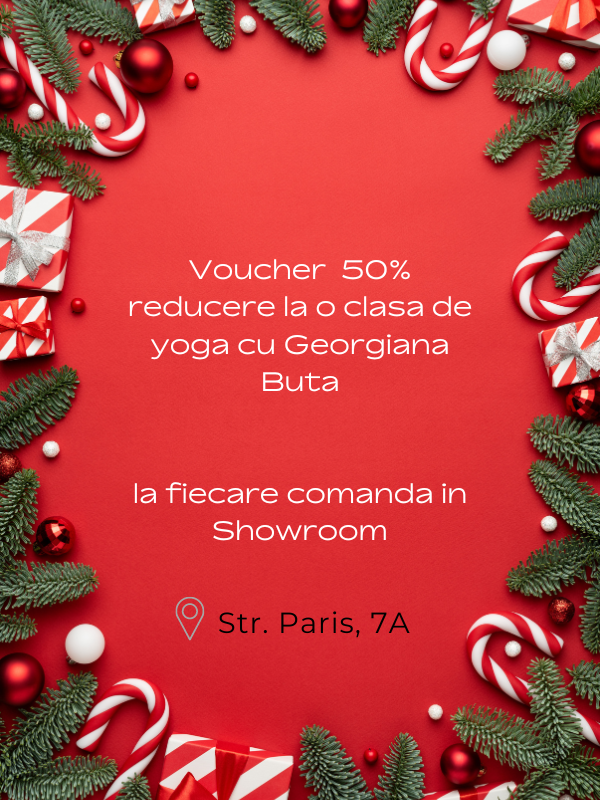 De aceea, cadoul advent din ziua 7 este un voucher cu reducere de 50% la o clasa de yoga cu Georgiana Buta, pe care il primesti la orice achizitie din showroom-ul AMALIN, din strada Paris nr. 7A.