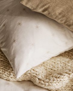 Alege mai multe modele de huse si combina-le, pentru a crea un pattern armonios si festiv, demn de un designer profesionist. Adauga si una sau doua paturi din lana si totul va arata genial!