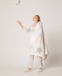Patura de la OYSHO nu este doar pufoasa si perfecta de pus pe canapeaua din living, ci poate fi transformata si intr-un joc de Twister, pentru atunci cand familia are chef de distractie.