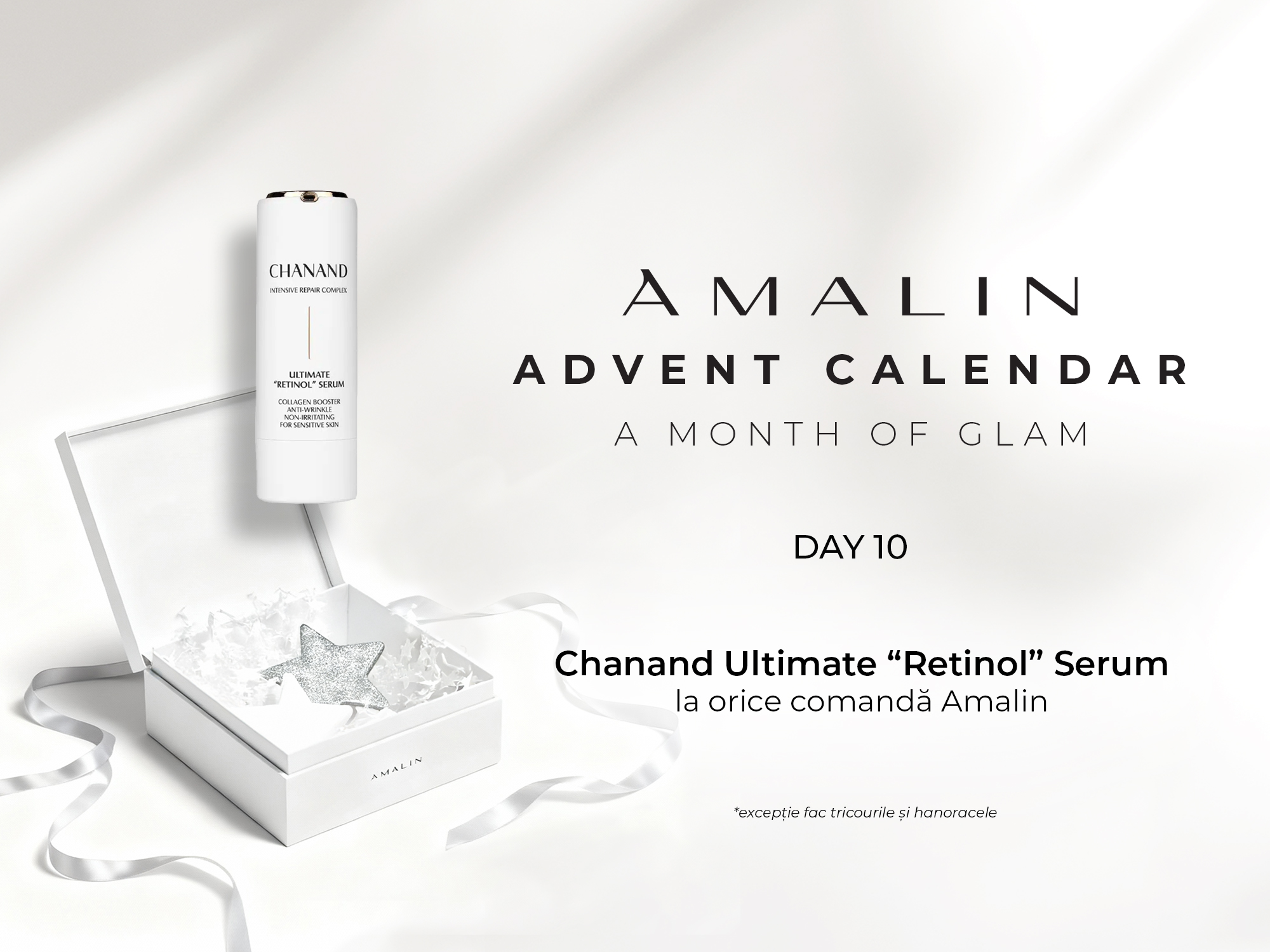 Ultimate “Retinol” Serum de la Chanand este rasfatul suprem pentru tenul tau, iar azi, 10 decembrie, il vei primi cadou la orice achizitie AMALIN – online sau in magazinul de pe strada Paris 7A. Textura sa fina si formula avansata sunt create pentru a reda luminozitatea pielii, pentru a o revitaliza si pentru a-ti oferi acea senzatie de incredere care vine odata cu un ten ingrijit.