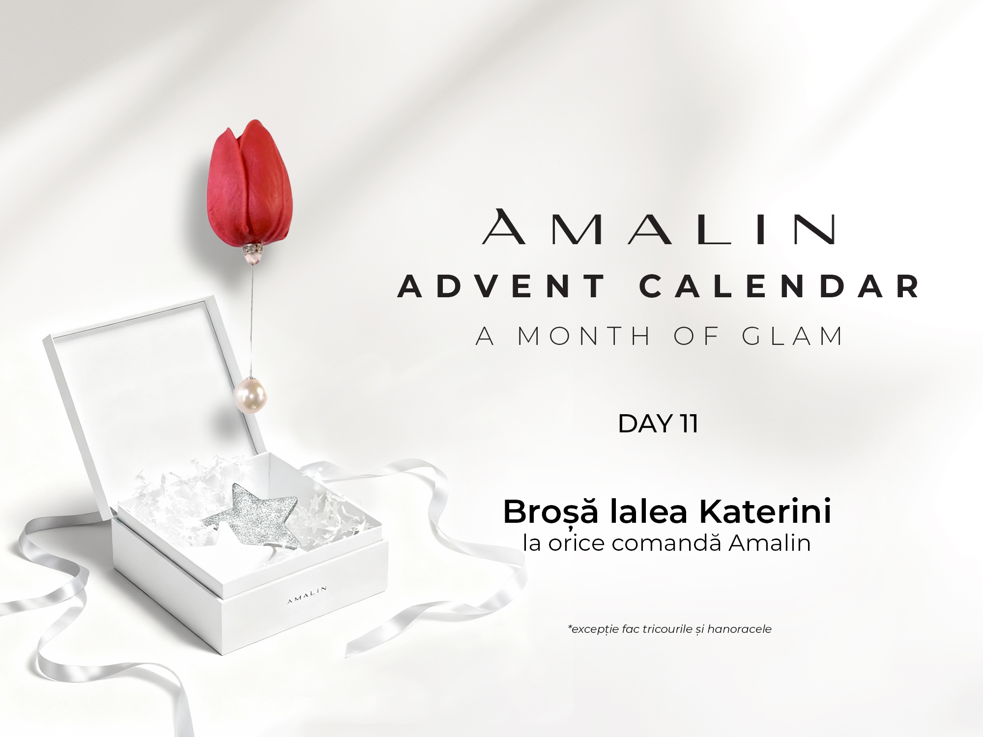 In ziua 11, calendarul AMALIN iti aduce un dar care nu doar completeaza un outfit, ci ii da personalitate: brosa stilata „Lalea Rosie” de la Katerini.