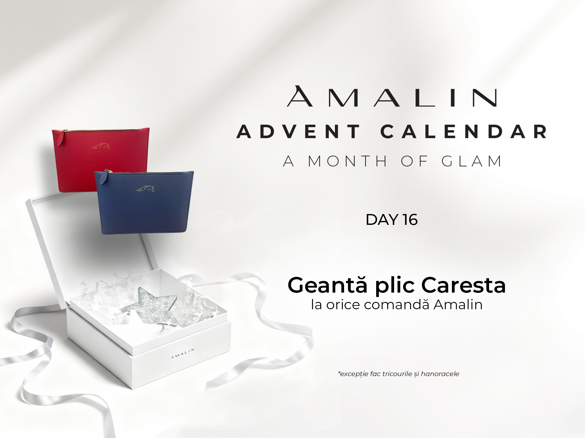 In ziua 16, calendarul iti aduce un cadou care completeaza perfect orice tinuta festiva: o geanta plic de la Caresta. Este acel accesoriu care nu are nevoie de prea mult pentru a se face remarcat, dar care adauga instant rafinament si echilibru intregului look.