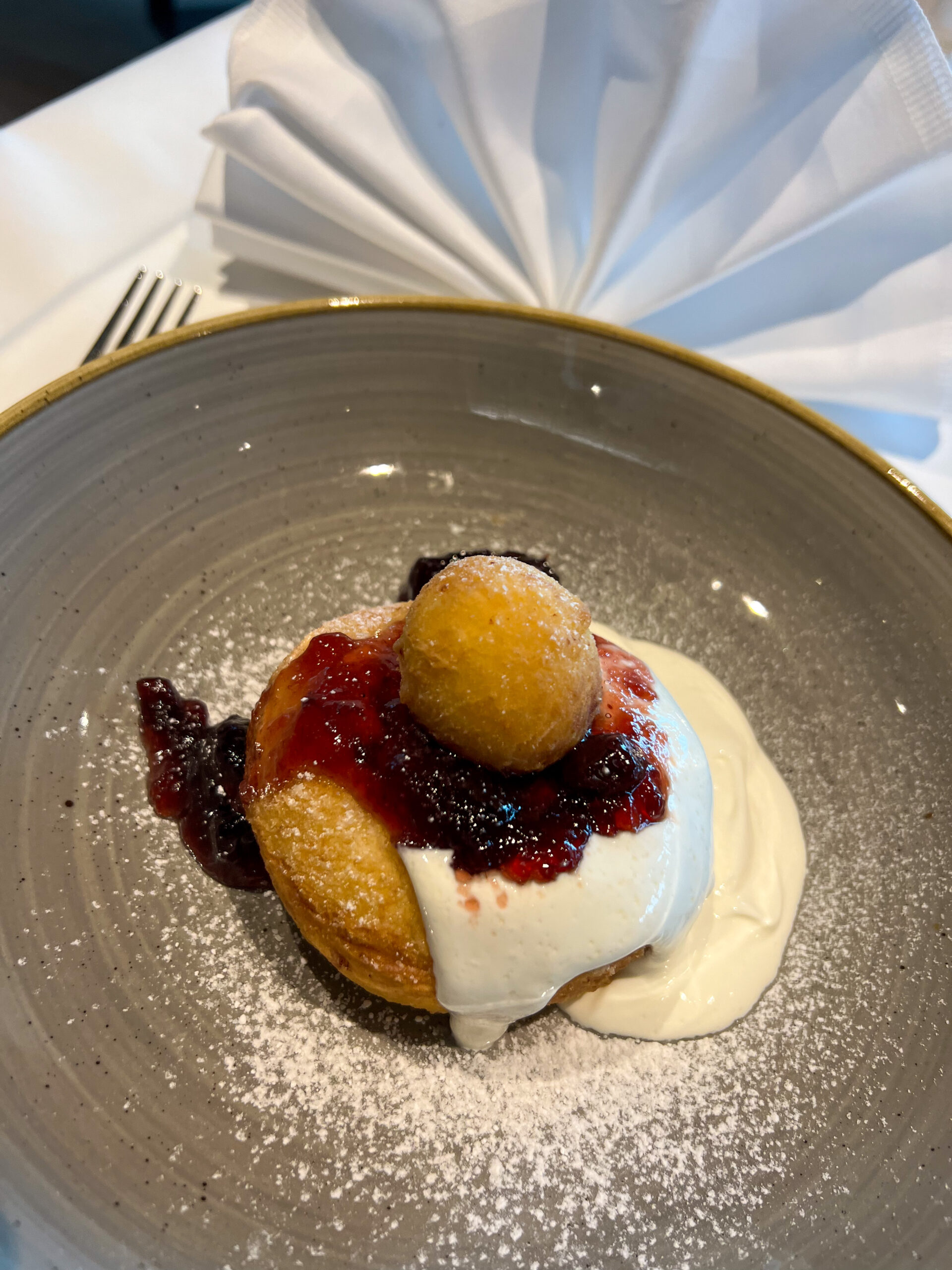 Mesele noastre cu view au fost memorabile, inca mai glumim referitor la cat de mult am mancat („dar n-a fost vina noastra, totul era mult prea bun!”). Am ales intre salate creative cu legume radacinoase din surse locale, dorada, paste sau mancaruri traditionale, toate reinterpretate intr-un meniu de fine dining, dar, sa recunoastem, pe primele locuri au fost papanasii si cartofii prajiti cu trufe si parmezan.