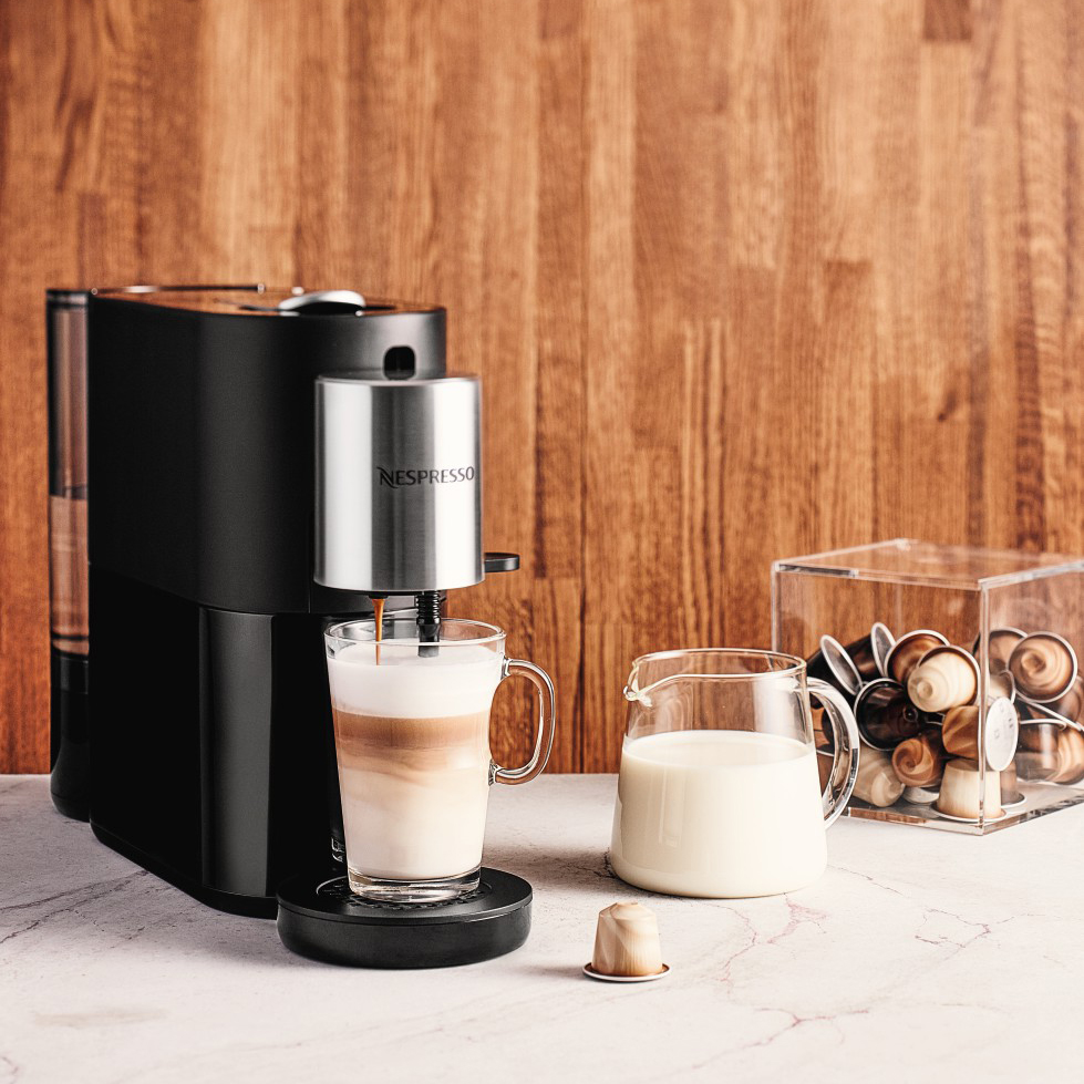 Odata cu venirea verii, poti prepara chiar si retete de cafea cu gheata. Pentru a face lucrurile si mai simple, poti pregati reteta preferata direct in ceasca de cafea. In acest fel, iti vei petrece timpul experimentand noi creatii savuroase, si nu curatand mai multe recipiente. Dispozitivul pentru spuma de lapte este usor detasabil si se poate spala cu usurinta. In acelasi timp, espressorul Nespresso Atelier are o forma ergonomica, ingusta si moderna, si finisaje din otel inoxidabil.