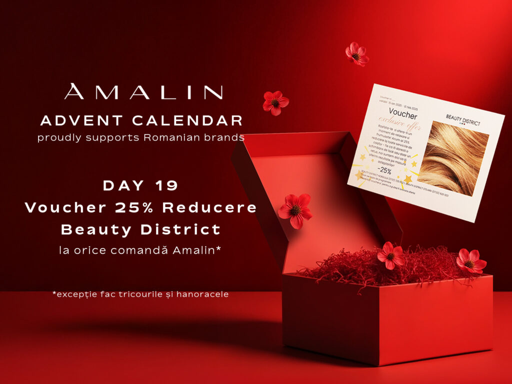De aceea, ne-am gandit ca in ziua 19 a Calendarului Advent Amalin sa-ti facem o bucurie sub forma unui voucher cu 25% reducere la serviciile de coafor din cadrul Beauty District. Vei primi voucherul azi, 19 decembrie, la orice comanda* Amalin din magazin (Str. Paris nr. 7A) sau din shop.andreearaicu.ro (*cu exceptia tricourilor, hanoracelor si produselor de dezvoltare personala).