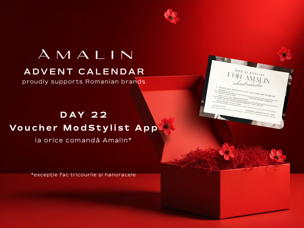 Ne-am gandit sa iti indeplinim aceasta dorinta, iar in ziua 22 a Calendarului Advent Amalin iti oferim un voucher pentru folosirea gratuita timp de un an a aplicatiei de fashion Mod AI Stylist. Vei primi voucherul azi, 22 decembrie, la orice comanda* Amalin de pe site-ul shop.andreearaicu.ro (*exceptie fac tricourile, hanoracele si produsele de dezvoltare personala).