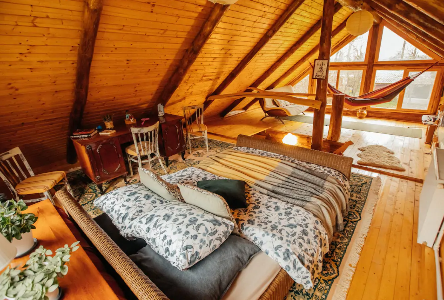 O alta cazare ideala pentru evadarea din cotidian este Transylvania Log Cabin. Este o cabana din lemn care ofera tot confortul unei unitati de cazare premium: pat king size, baie proprie, hamac si, bineinteles, o priveliste care iti taie rasuflarea. Fie ca alegi sa te relaxezi in hamac cu o carte buna sau sa te bucuri de viata autentica din Transilvania, iti vei face amintiri frumoase, alaturi de cei dragi tie.