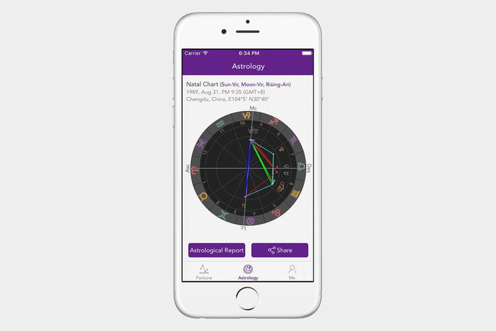 Aceasta aplicatie iti permite sa completezi quizz-uri online si sa-ti provoci prietenii pasionati de astrologie. Vei primi gratuit horoscopul zilnic pentru aspecte ale vietii precum dragoste, cariera, sanatate si altele. Poti obtine instant sfaturi folosind cartile de tarot, iar aplicatia iti ofera acces si la servicii precum numerologie, fazele lunii, perioadele de retrogradare ale lui Mercur sau compatibilitate in functie de zodie. Serviciile platite din cadrul aplicatiei au costuri ce variaza intre 2 si 45 de dolari pentru un pachet premium valabil un an.