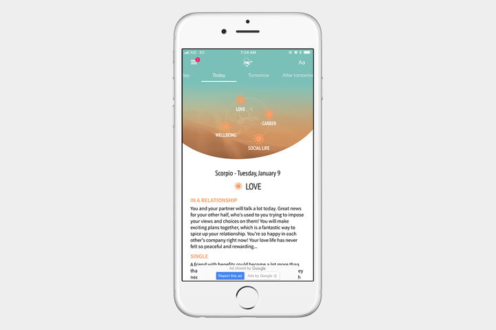 iHoroscope iti ofera horoscopul zilnic, saptamanal, lunar si horoscopul anului. Aplicatia iti permite sa discuti cu un medium, iar daca pui intrebari, vei primi raspunsurile in cateva minute. Este integrata si pentru folosirea pe Apple Watch.