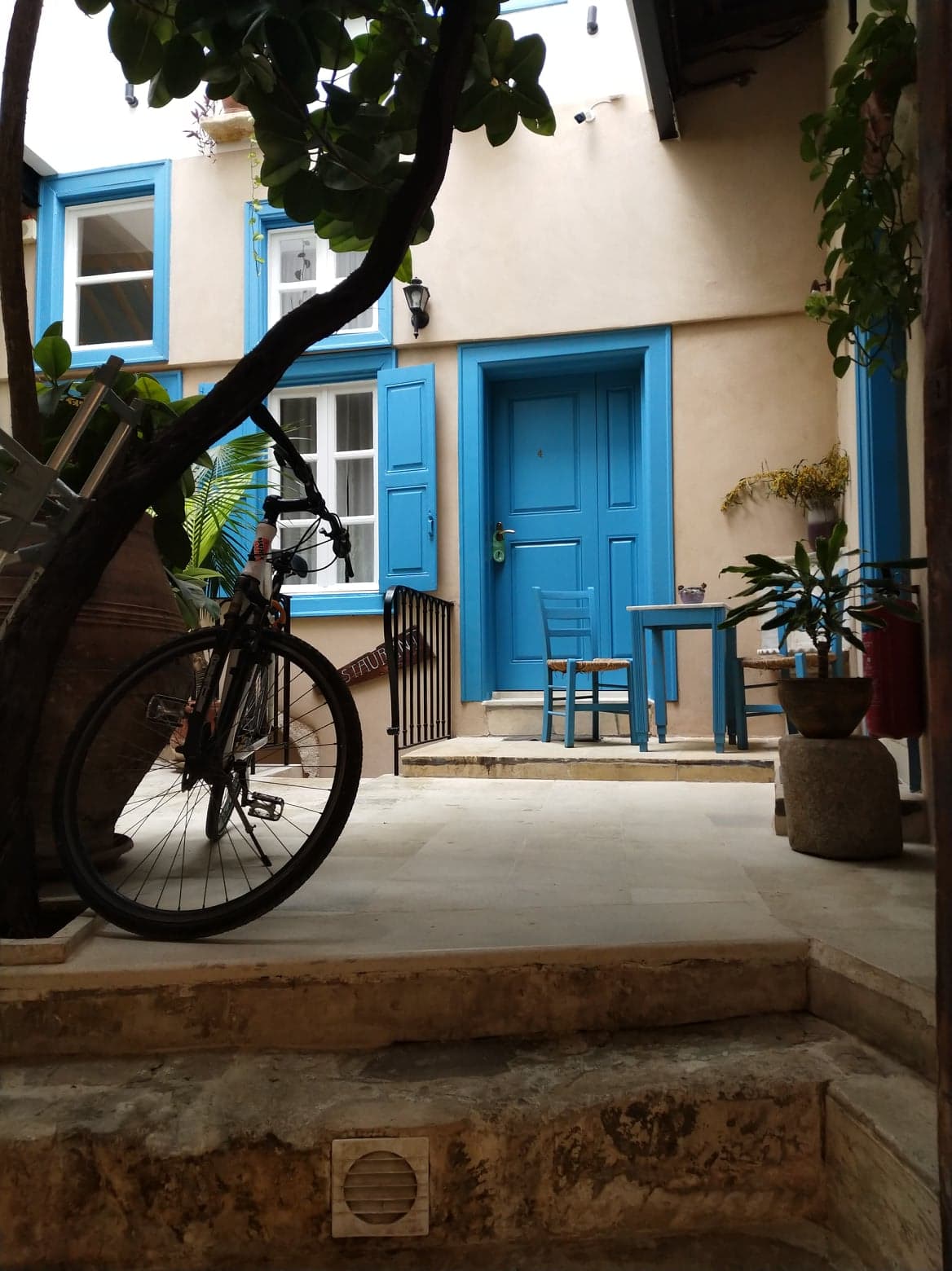 Casa cu usi si obloane albastre din centrul istoric al orasului Chania. Foto: Arhiva personala