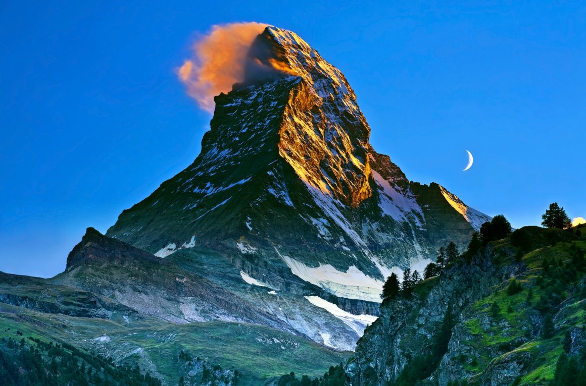 Avand o inaltime de 4479 de metri, Matterhorn este icoana Alpilor elvetieni dar si unul dintre locurile in care spectacolul si spectaculosul se intalnesc la final de zi cand soarele straluceste intr-o culoare argintie, divina, in spatele partiilor inzapezite. Una dintre cele mai bune privelisti se arata la coliba Monte Rosa, un loc eco-friendly futurist. Excursia pana aici necesita multa energie, insa merita din plin.