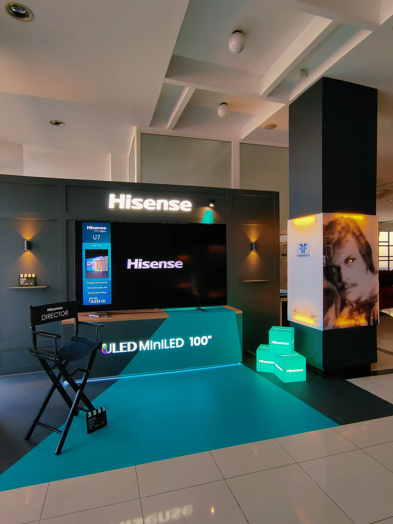 Pe langa sustinerea festivalului, Hisense a amplasat un colt special in incinta cinema-ului Florin Piersic din Cluj, unde vizitatorii pot trai magia cinematografiei direct de pe un televizor ULED MiniLED de 100 inch. Intr-un spatiu inspirat din lumea regizorilor, poti face poze pe un scaun de regizor si simti, pentru o clipa, ca esti chiar tu in spatele unei mari povesti.