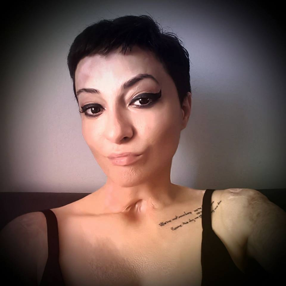 Nu mi se pare relevanta culoarea hainelor sau a machiajului, faptul ca am ambele brate cu grefe de piele sau degetele amputate. Pe interior sunt acelasi om, traiesc aceleasi lucruri si nu stiu cum pot fi altfel decat in modul in care simt.