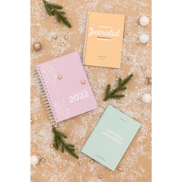 Pachetul cu Agenda 2022, Jurnalul Recunostintei si Jurnalul Emotiilor este cadoul complet pentru un un an plin de transformare interioara si mai multa grija acordata sanatatii.