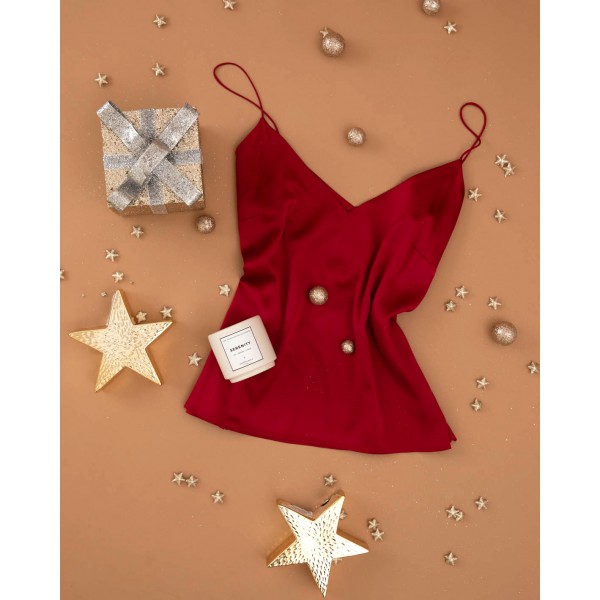 Pachet top din matase cu bretele subtiri si lumanare parfumata