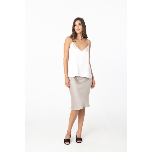 Combinatia de alb si perlute mici e absolut fermecatoare – nu e de mirare ca a devenit unul dintre preferatele Andreei! Topul este disponibil si pe negru sau nude.
