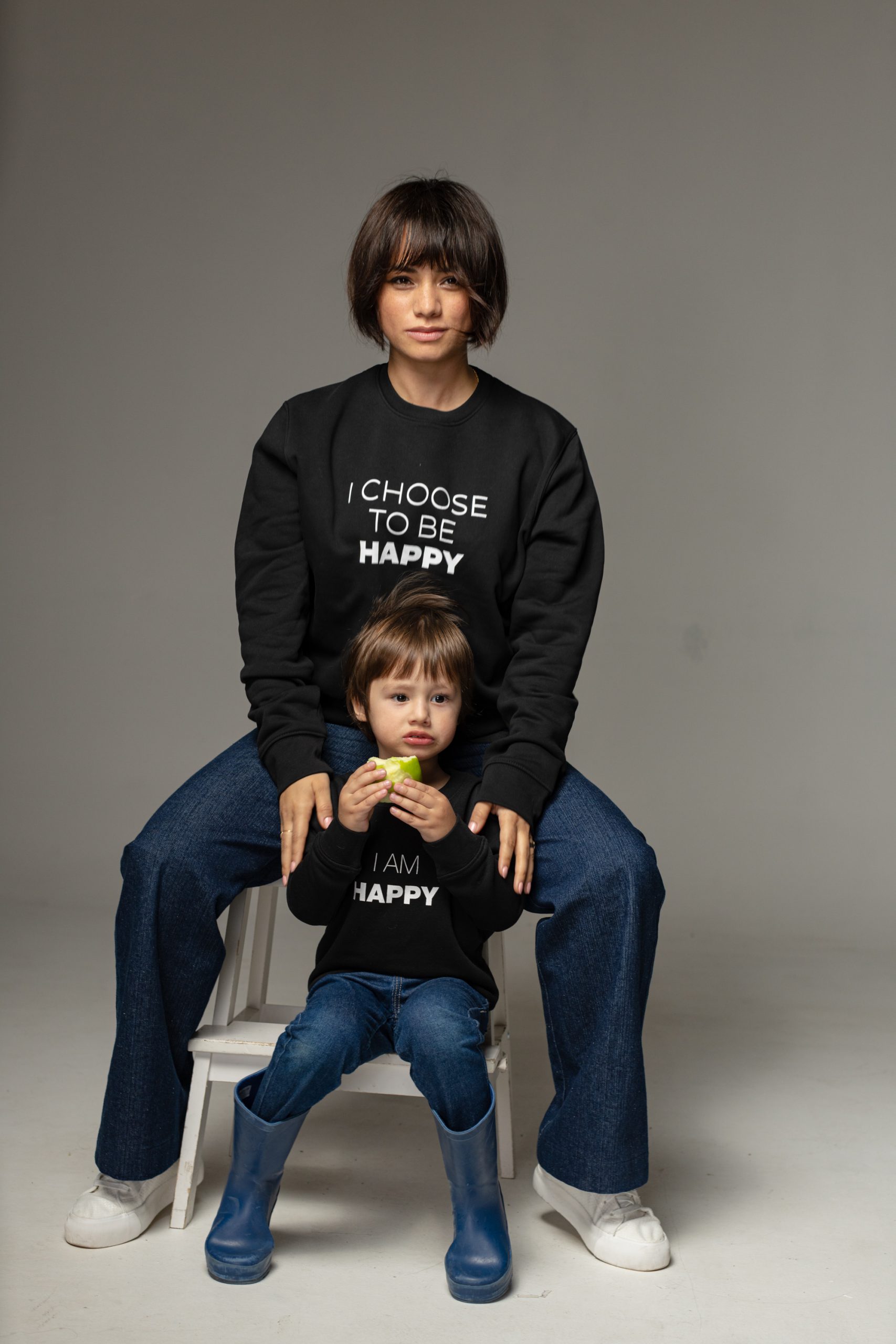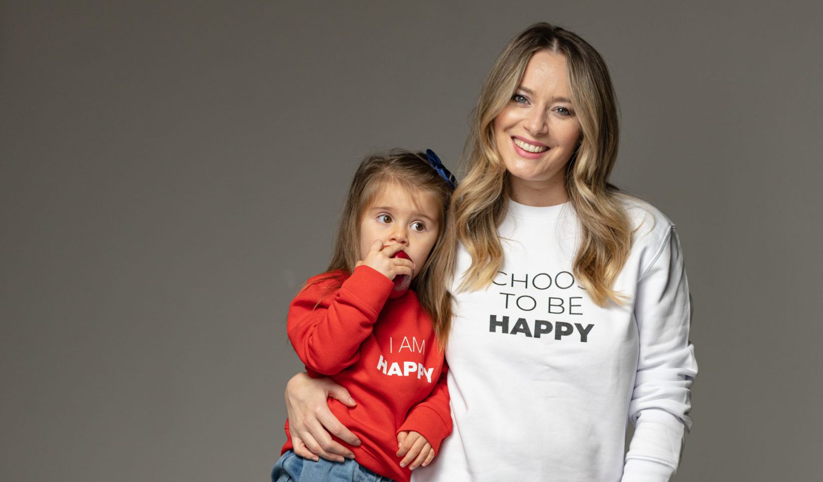 Hanoracele in nuante de albastru, negru, roz si alb, cu mesaje precum „I am happy”, „All I need is love” sau „I am enough (and my mom knows it)” li s-au potrivit atat de bine!