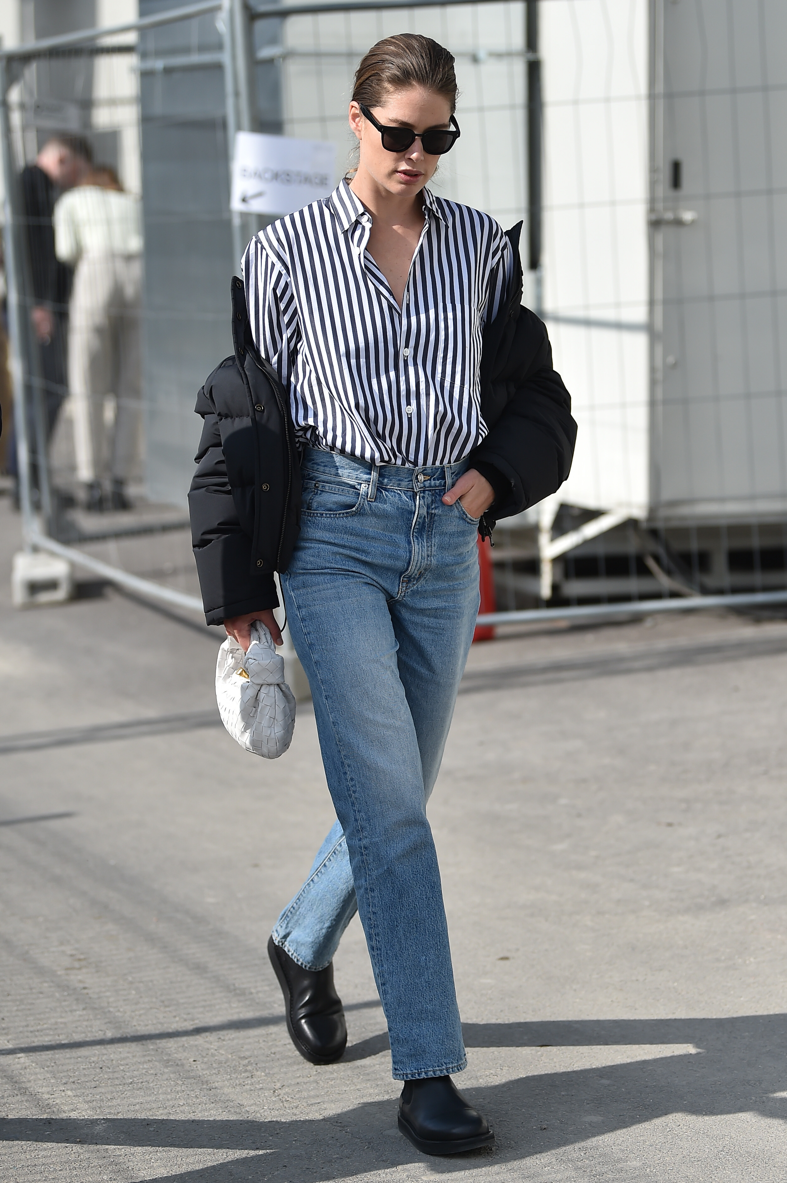 In cazul supermodelelor care isi petrec mult timp purtand tinute spectaculoase pe podiumurile de prezentare, uneori este interesant sa vedem ce poarta in timpul lor liber. Modelul olandez Doutzen Kroes a optat pentru o tinuta lejera formata din camasa cu dungi albastre si jeansi, alegerea ideala pentru o zi frumoasa de primavara.