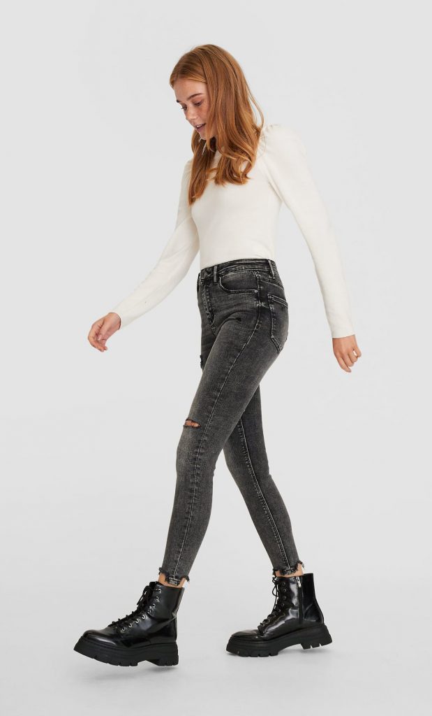 Daca nu te poti hotari intre un look elegant si unul relaxat, le poti avea pe ambele. Nimic nu se compara cu o pereche de jeansi negri, cu croiala perfecta. Adauga un top clasic, la baza gatului, plus un sacou deschis la culoare. Simplu si chic!