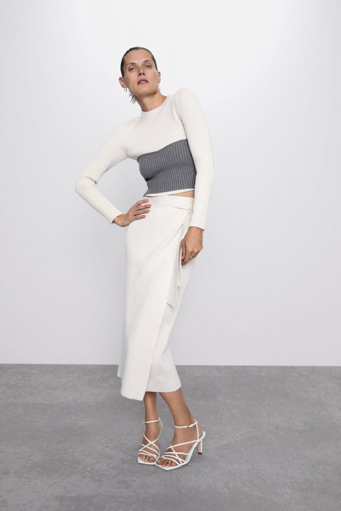 Cand vorbim despre tinute minimaliste pentru toamna, acest outfit compus din pulover si fusta tricotata este ideal pentru o aparitie de neuitat. Nu trebuie sa accesorizezi decat cu o pereche de ochelari de soare cu rame fumurii, o geanta simpla si o pereche de incaltari negre.