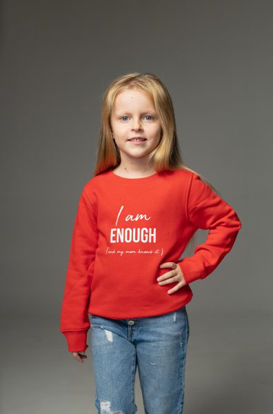 Un hanorac rosu il va ajuta pe micutul tau sa se simta increzator si optimist. Mesajul I am enough (and my mom knows it) te va inspira sa-l ajuti sa inteleaga ca este suficient de bun, de destept si de cuminte pentru tine. Ca iubirea nu este conditionata de nimic si ca vei fi mereu acolo pentru el.