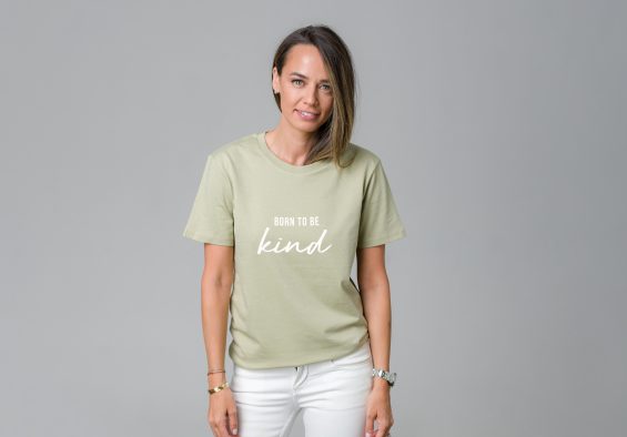 Tricou verde din bumbac organic Born to be kind, 139 lei, shop.andreearaicu.ro